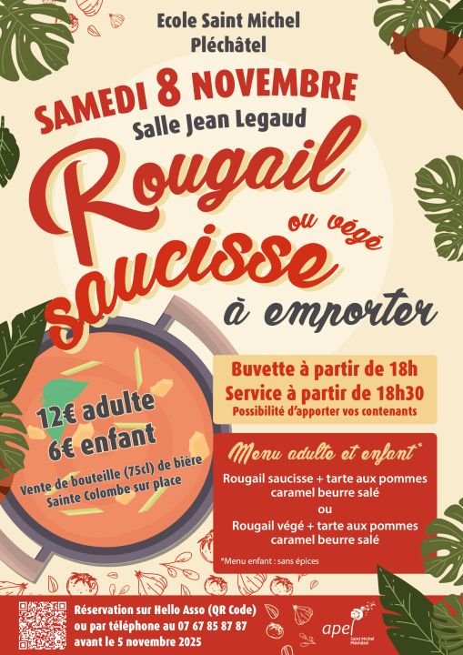 👉 La vente et la préparation du repas à emporter auront finalement lieu le samedi 8 novembre (et non le 15).